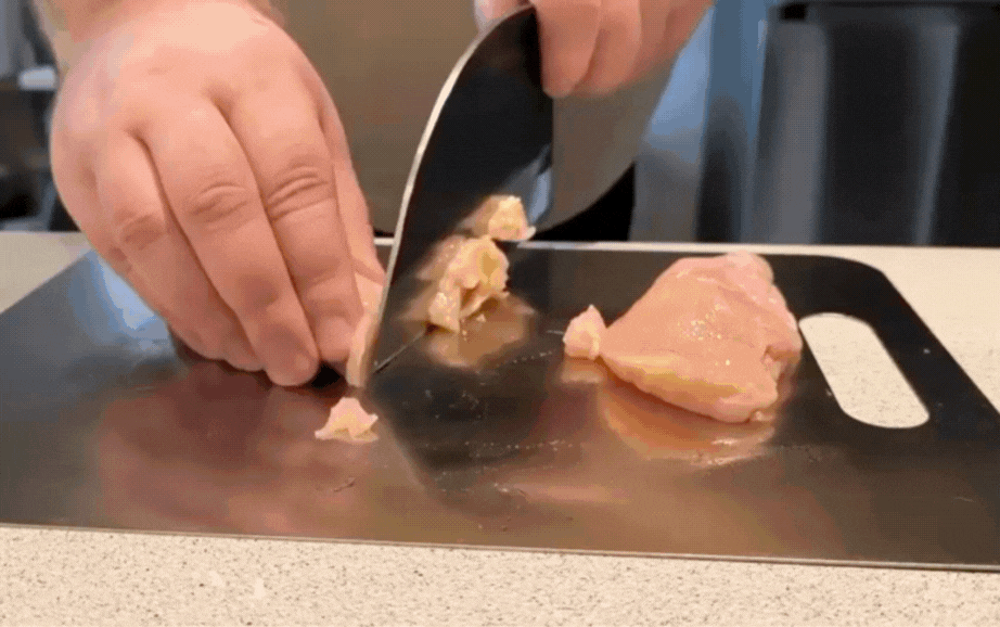 I started testing the Katuchef chopping board by using one side for raw chicken and the other for fresh vegetables. After a quick wash, there were no stains, odors, or scratches – just a clean, ready-to-use surface.